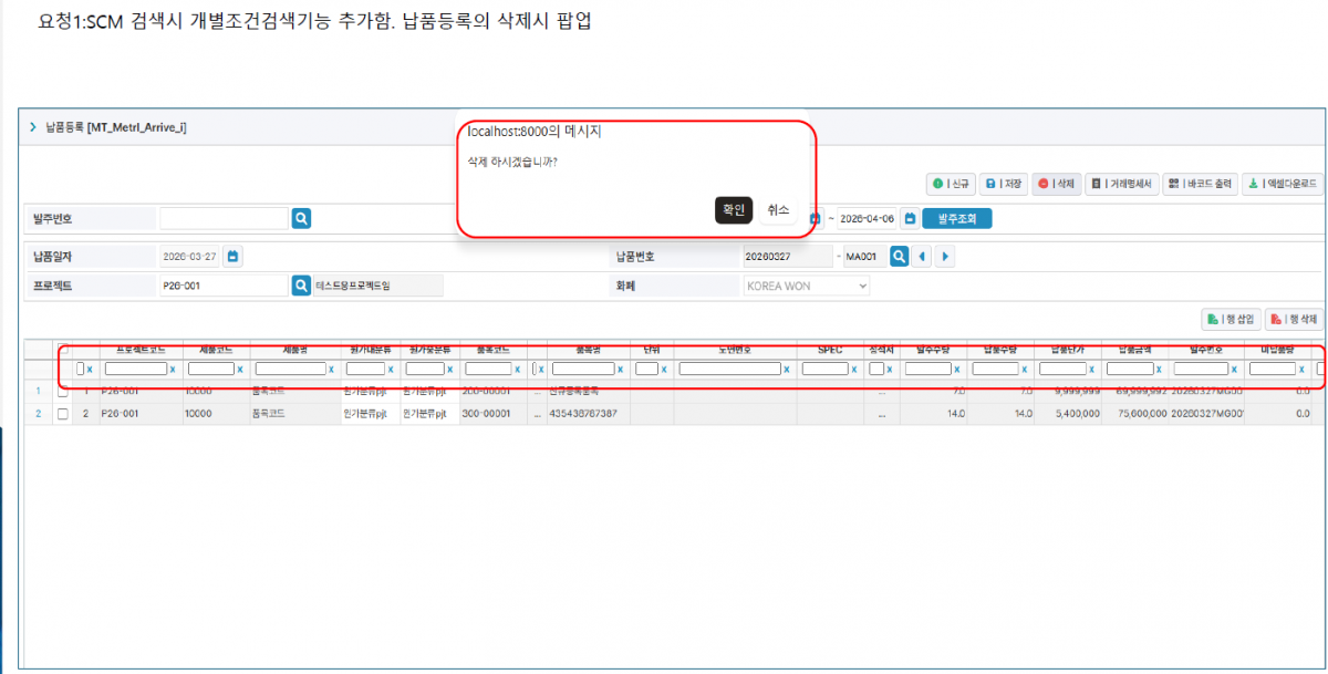 pms ERP SCM 기능개선 안내(납품등록:검색조건 추가)