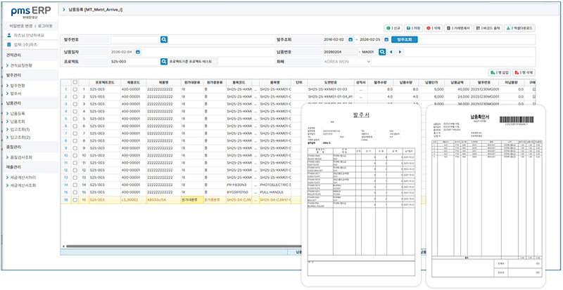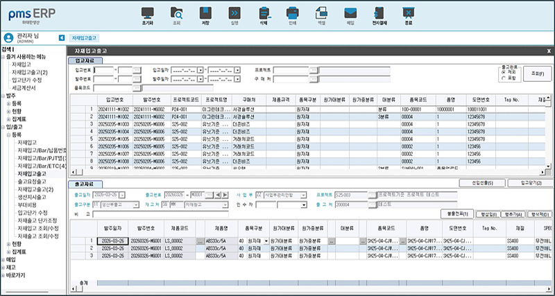 pmsERP 자재입고