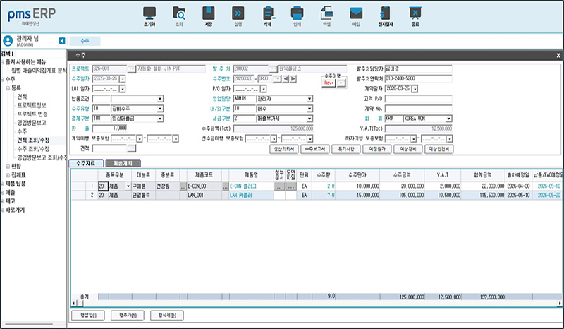 pmsERP 영업관리(수주등록)