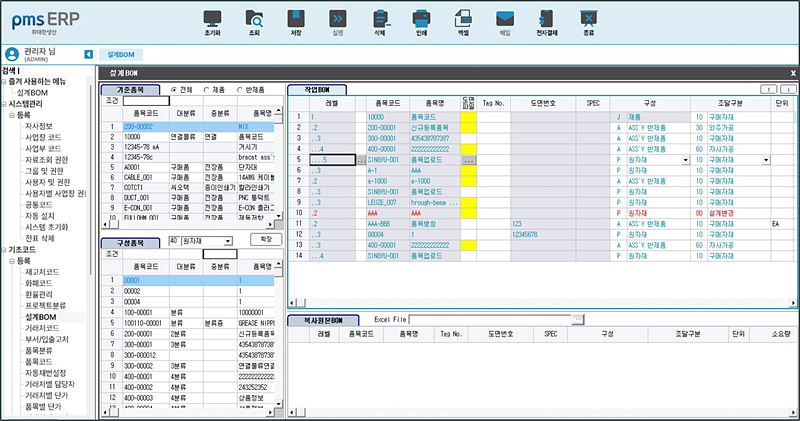 pmsERP 설계BOM(등록)