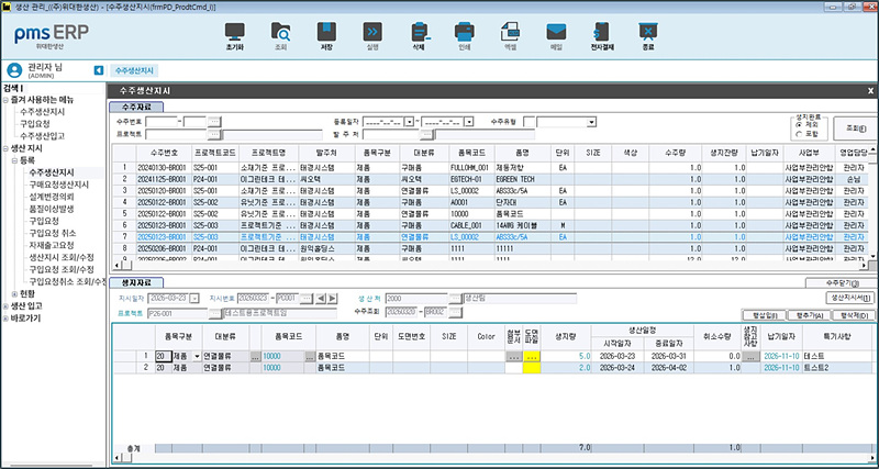 pmsERP 생산지시